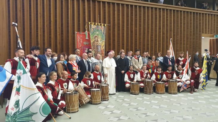 Il Palio dei Somari, attraverso una delegazione composta da rappresentanti dell’Associazione Sagra San Giuseppe, del Gruppo Sbandieratori e Tamburini, dell’amministrazione comunale di Torrita di Siena, della Diocesi Montepulciano Chiusi Pienza e dalle associazioni locali che tradizionalmente partecipano all’organizzazione del Palio, accompagnati dal Vescovo Monsignor Stefano Manetti, è stato ricevuto da Papa Francesco in Aula Paolo VI in Vaticano.