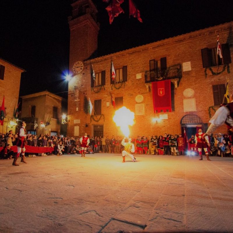 Nel fine settimana che precede il Palio, il centro storico di Torrita fa da cornice alla celebrazione dell'enogastronomia toscana nelle Taverne, i caratteristici banchetti allestiti dalle otto Contrade. Dall'antipasto ai pici, e dalla carne alle frittelle di riso, i tipici piatti della tradizione vengono serviti in un'atmosfera resa ancor più suggestiva dagli spettacoli itineranti.